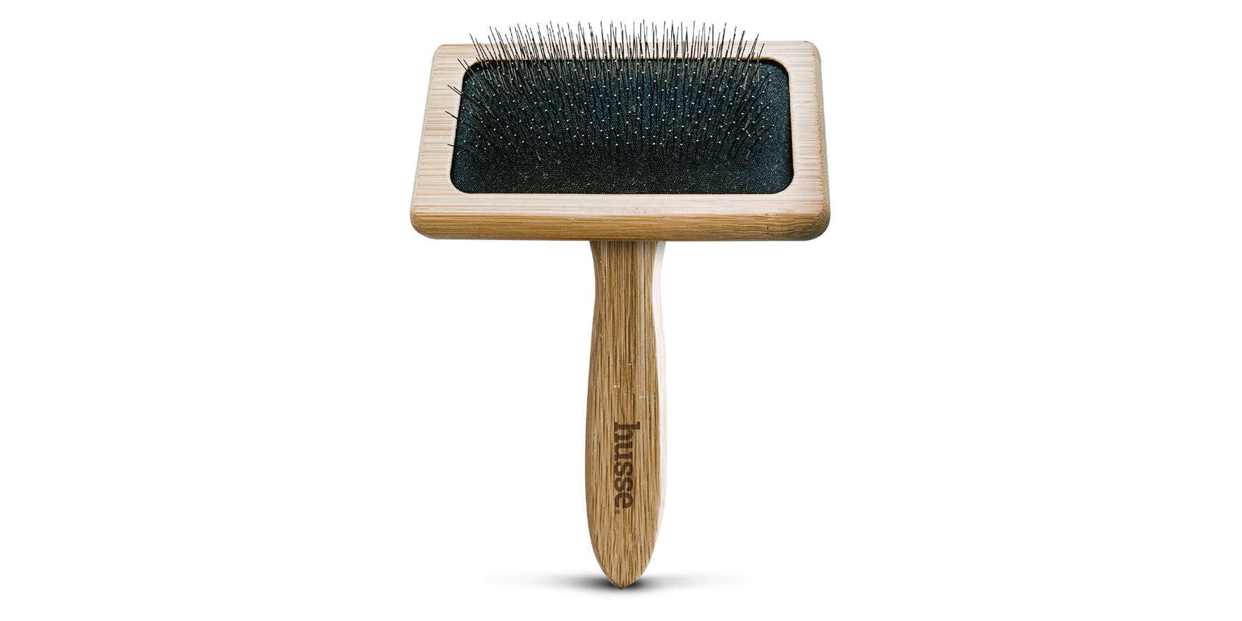 Denne rektangulære slicker-børsten har bambuskonstruksjon og håndtak, med vinklede stålstifter som er innlagt i en myk gummiluftpute. Den er egnet for kjæledyr i alle størrelser med alle forskjellige hårlengder og tykkelser. De vinklede pinnene fjerner komfortabelt løst hår, små knuter og skitt fra underpelsen. Bruk Karda regelmessig for å redusere utslipp, forhindre at matter dannes og for å holde kjæledyrets pels ren og glatt.