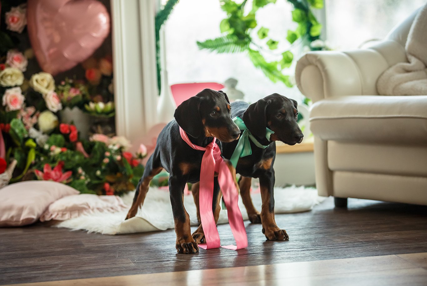 Den korte og glatte pelsen er veldig lett å ta vare på. Dobermans røyter ikke mye, men deres korte og stive hår kan feste seg til klær eller møbler. En ukentlig børsting kan redusere mengden hår som hunden din vil legge igjen i huset. For å rengjøre hundens pels kan du simpelt tørke den av med en gummihanske eller et fuktig håndkle. Ikke glem å trimme neglene til hunden om du ser de blir for lange. Etter en lang tur påfør en fuktighetsgivende balsam på hundens poter. Sjekk hundens ører og under øyeområdet.