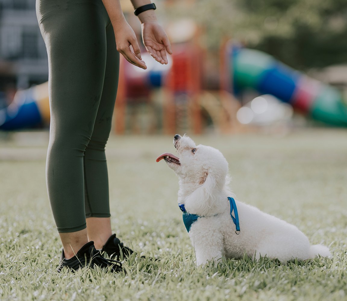 Du burde gjøre hunden vant til både halsbånd og band helt fra starten av. Første trening med. band kan gjøres hjemme, hvor valen vil være mer fokusert enn andre steder. Når du tar valpen ut på tur kan det være mange distraksjoner, og den vil fokusere på å utforske, snufse rundt og føle på alt. Vær tålmodig og forberedt på mange luktepauser på turen. Det er stor hjelp i å ta med godbiter, som kan brukes som distraksjon og belønning. Det er viktig å huske at selv om hunden din er mye ute i hagen så trenger den fortsatt daglige turer utenfor. Alle hunder, uavhengig av størrelse, trening 3 turer om dagen.