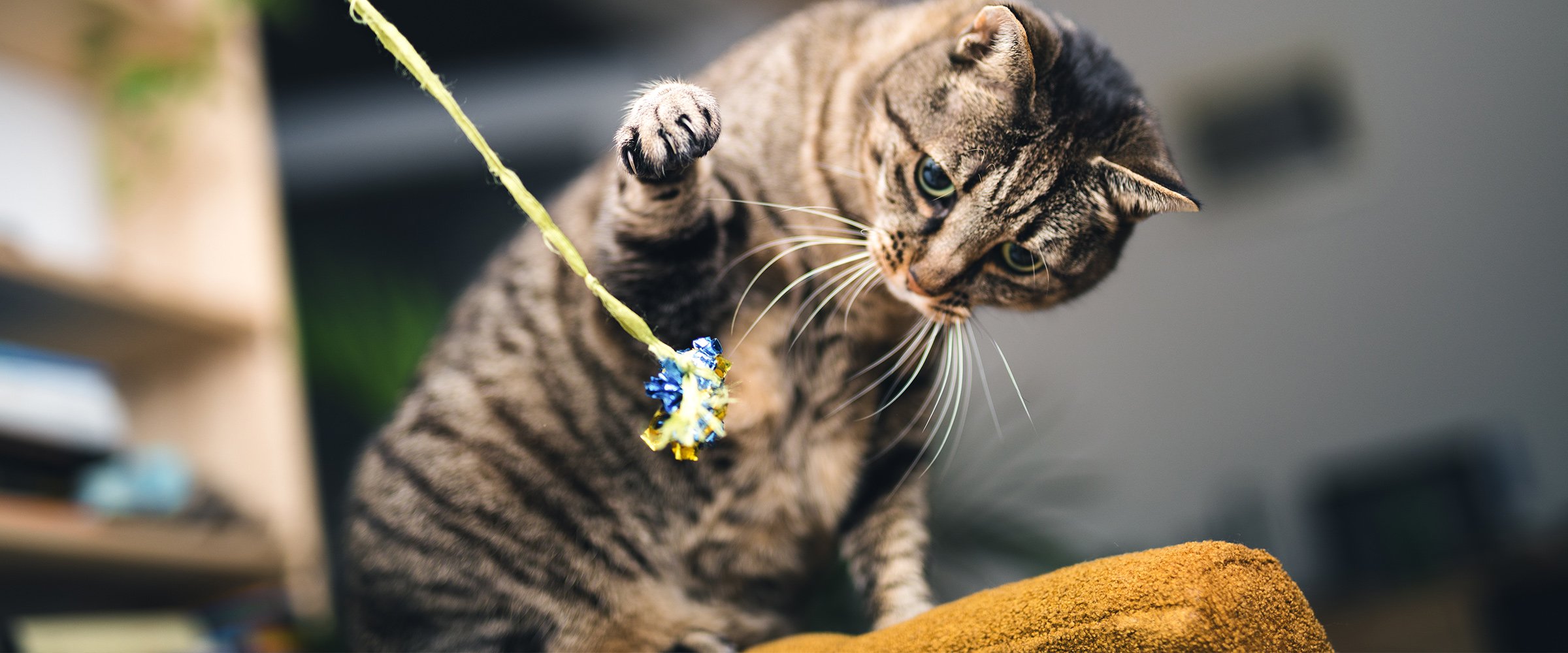 Å lære en "hent" -kommando kan bidra til å øke mengden fysisk aktivitet i kattens daglige rutine. For dette trikset, velg et leketøy katten din enkelt kan plukke opp med tennene. Kast først leketøyet nær deg mens du gir en "Hent!" kommando. Selv om katter elsker å jakte på leker du kaster, er de ikke så tilbøyelige til å bringe dem tilbake til deg. Litt tålmodighet og oppmuntring kan gjøre underverker for å lære katten din å hente.
