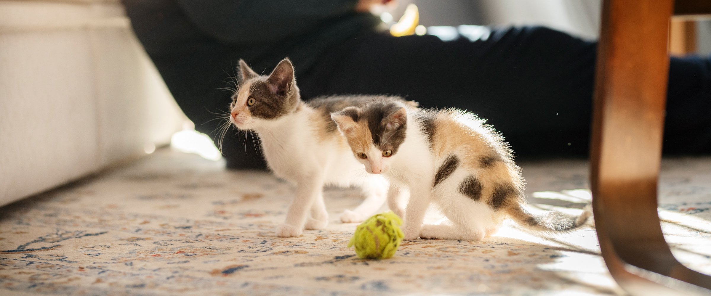 Skilt fra sine søsken og foreldre finner kattunger størst trøst hos ledsageren til de nye familiene. Dessverre kan du ikke hele tiden være hjemme med kattungen, så du må venne kattungen til å være komfortabel når den må være alene. Hvis du må forlate kattungen, kan du begynne tilvenningen med korte fravær der du ikke går for langt - selv å forlate rommet vil hjelpe. Begynn sakte og gradvis forleng tiden du er borte. Forlat huset naturlig, ikke gjør en scene av det. Du kan leke med kattungen din før du drar for å gi den mulighet til å få slippe ut energi. En sliten kattunge vil mest sannsynlig bare sove når du forlater huset. Du kan legge igjen kattens favorittleketøy eller til og med slå på radio eller TV som en ekstra distraksjon og noe som kan fange kattens oppmerksomhet.