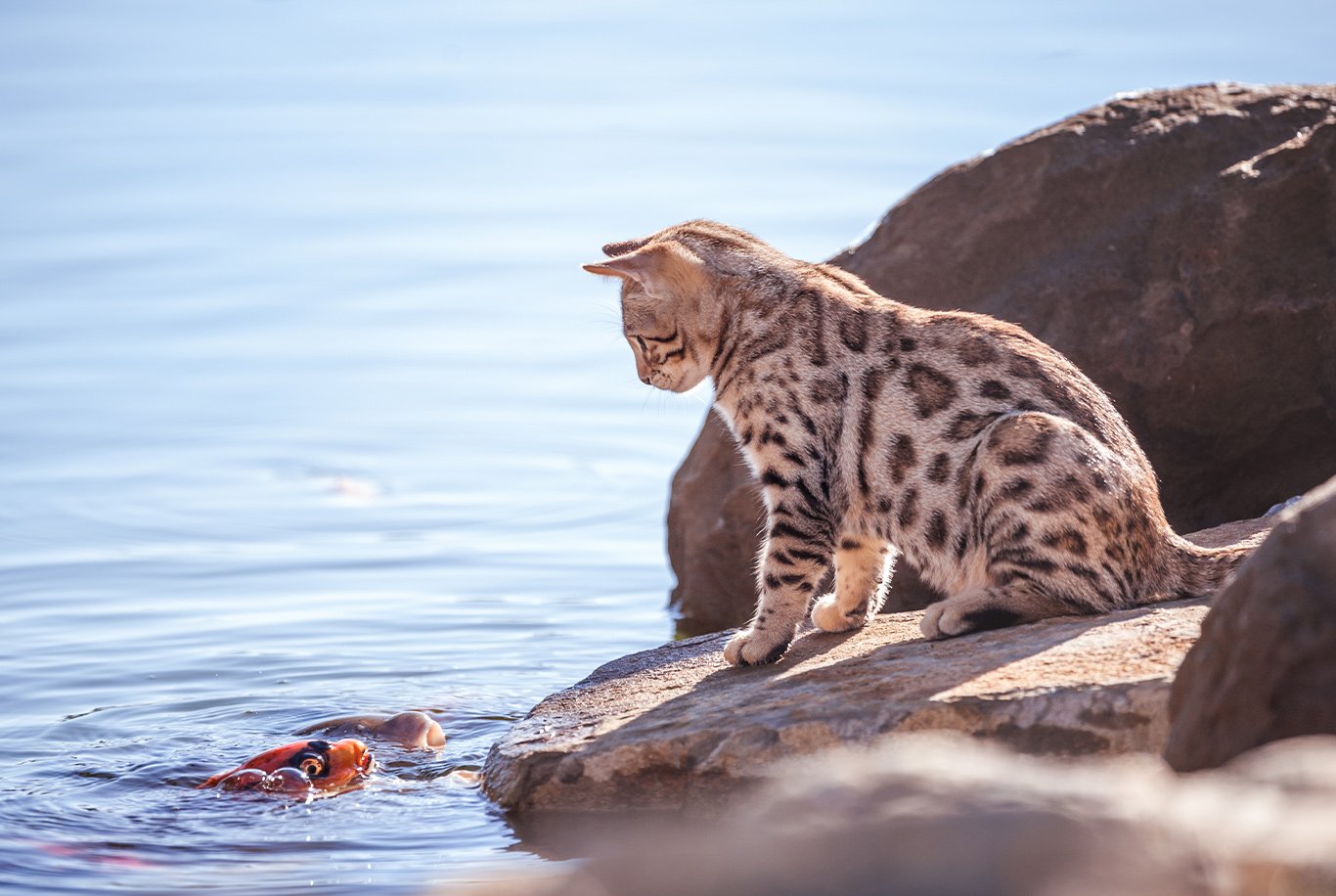 Med sine forfedre i villkatter, er Bengalkatter en veldig aktiv, smidig og energisk katterase som kan være utfordrende. De trenger mye fysisk aktivitet som kan omfatte å leke henting, klatre til tilgjengelige høyder eller til og med svømming. Lite aktive Bengalkatter kan utvikle uønskede og til og med destruktive vaner. Siden disse kattene har ganske kvikke poter, kan de lett vende seg for å hente personlige eiendeler eller trekke ting ned fra bord eller hyller rundt huset. Bengalkatter er veldig glad i vann, så sørg for at du ikke gir tilgang til akvarier eller dammer, da katten din gjerne prøver å fiske etter levende skapninger. Du kan til og med forvente at Bengal-katten ofte blir med deg i badekar eller dusj.