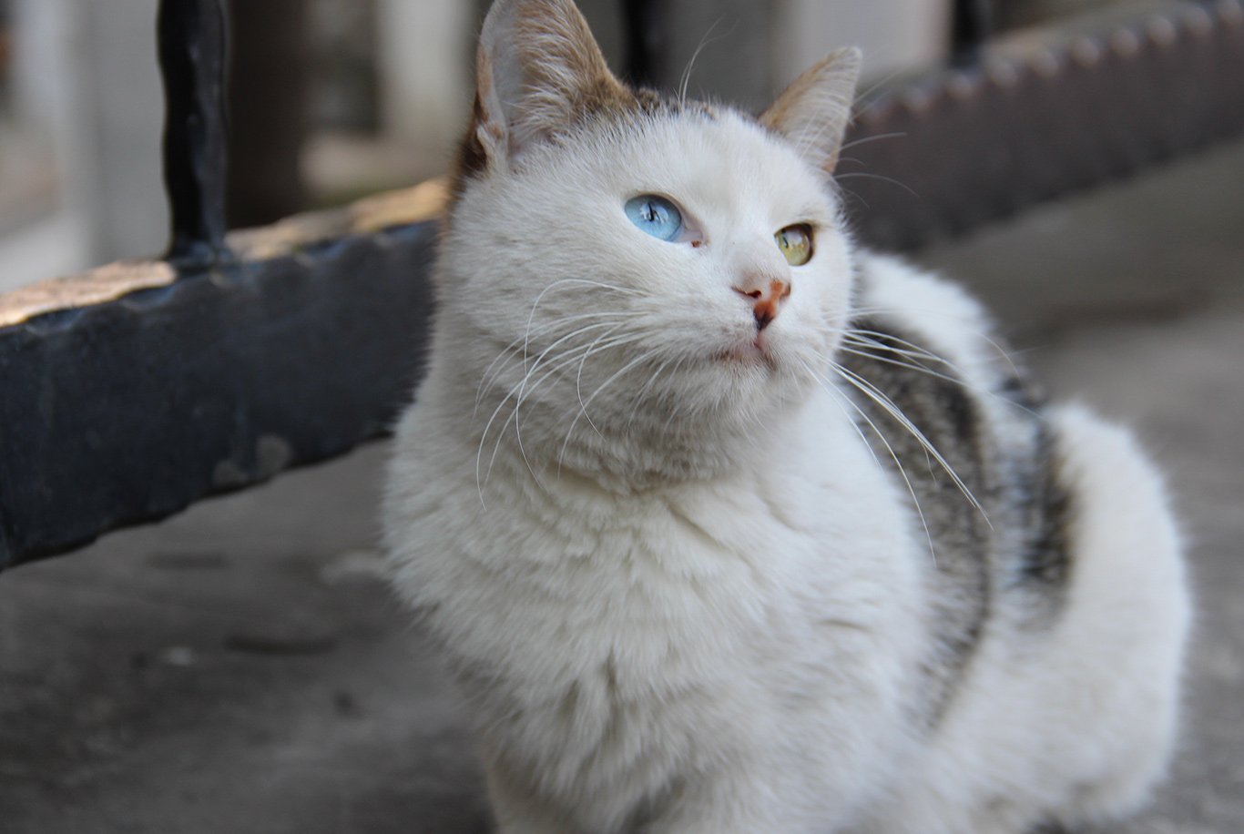 | hvit pels, blå eller gule øyne | |